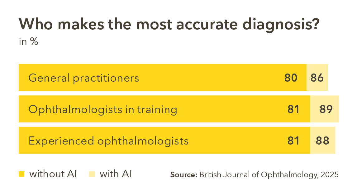 This is about more than technology. Ophthalmology faces a personnel shortage, and routine tasks eat up valuable time. Physicians often spend half their day on documentation instead of with patients. Somfai calls this “keyboard liberation”: AI should sort findings, summarize conversations, and analyse images – so medicine can look up again.