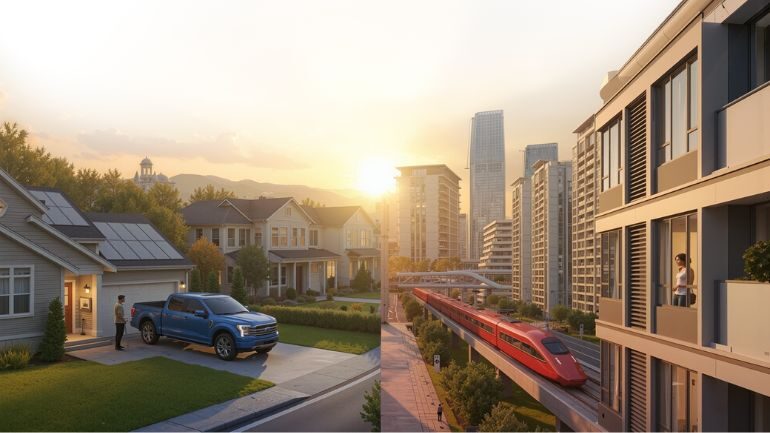 Columbus, USA, 2026: James erwacht früher als sonst – die Sonne wärmt sein Gesicht. Die Solaranlage, die er dank Subventionen kürzlich auf dem Dach seines Einfamilienhauses installiert hat, produziert schon fleissig Strom. Ins Büro fährt er mit dem SUV, vollgetankt an einer der wenigen Ökosprit-Tankstellen im Land. Auf dem Weg holt er zwei Kolleginnen ab – Fahrgemeinschaften haben Steuervorteile. Sie reden über die neuen Solarparks in Dayton und den staatlichen Zustupf für Elektroautos. James’ SUV hat noch ein paar Jahre Leben in sich; der nächste wird elektrisch.